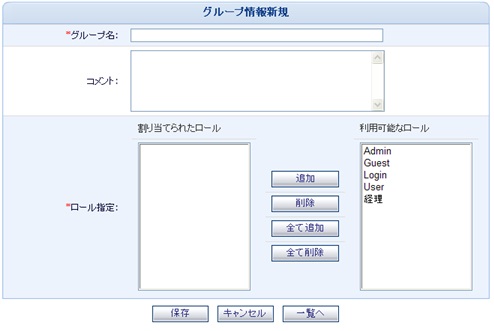 ボタン押下すると、「ユーザ情報新規」画面が表示されます。