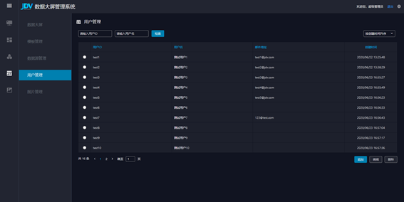 选择存在的用户后,点击编辑按钮可以修改该用户信息,点击删除按钮可以删除该用户。
