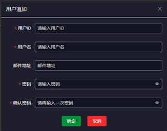 | 1 | 追加 | 点击追加按钮可以追加新的用户 |